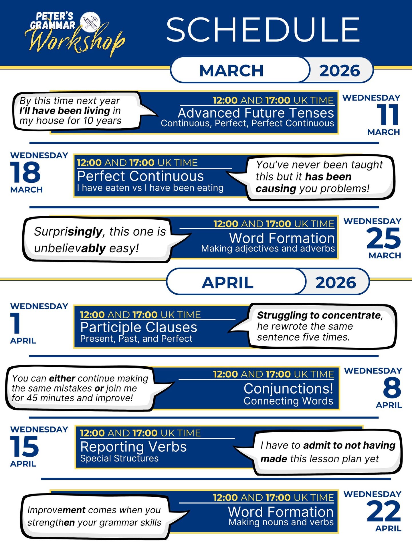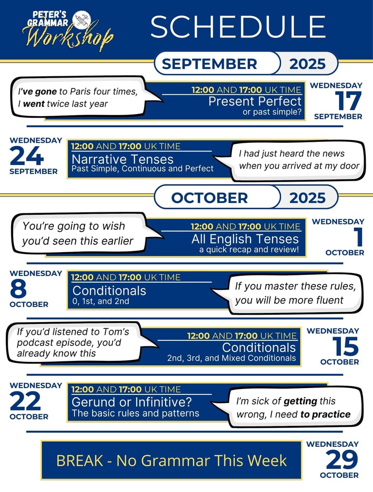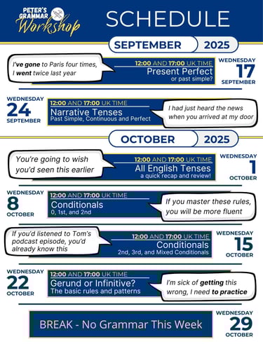 Join one Peter's Grammar Workshop meeting any time