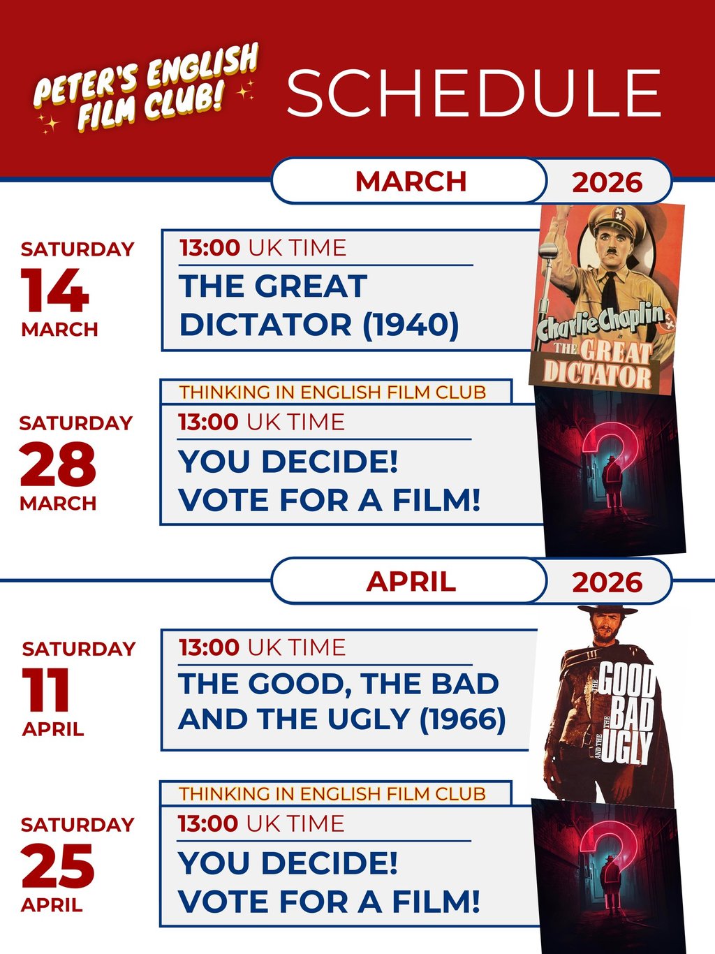 Join any Peter's English Film Club for one month