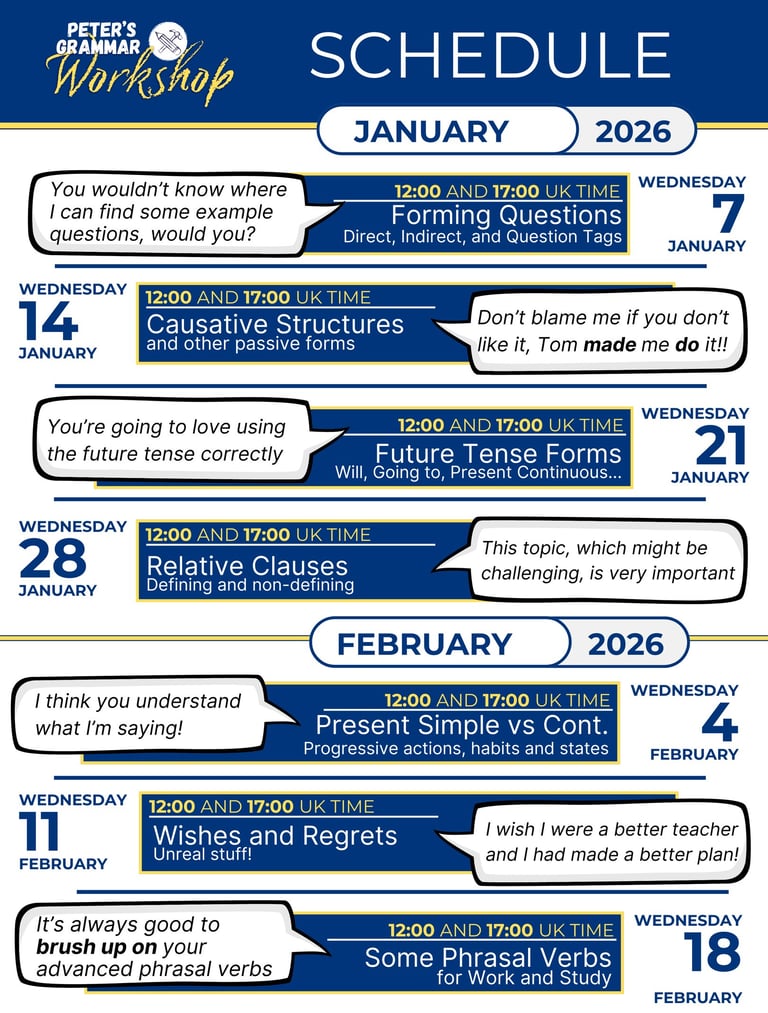 Join one Peter's Grammar Workshop meeting any time